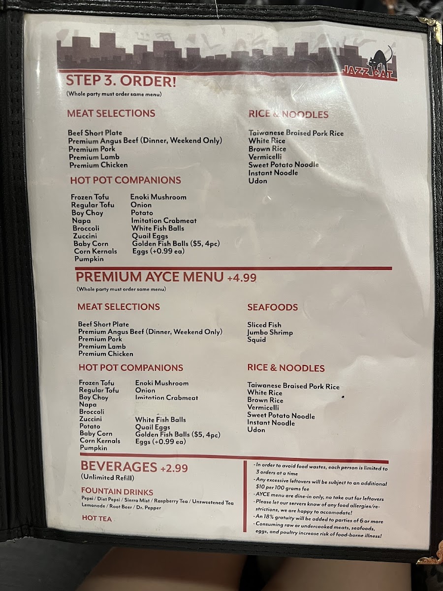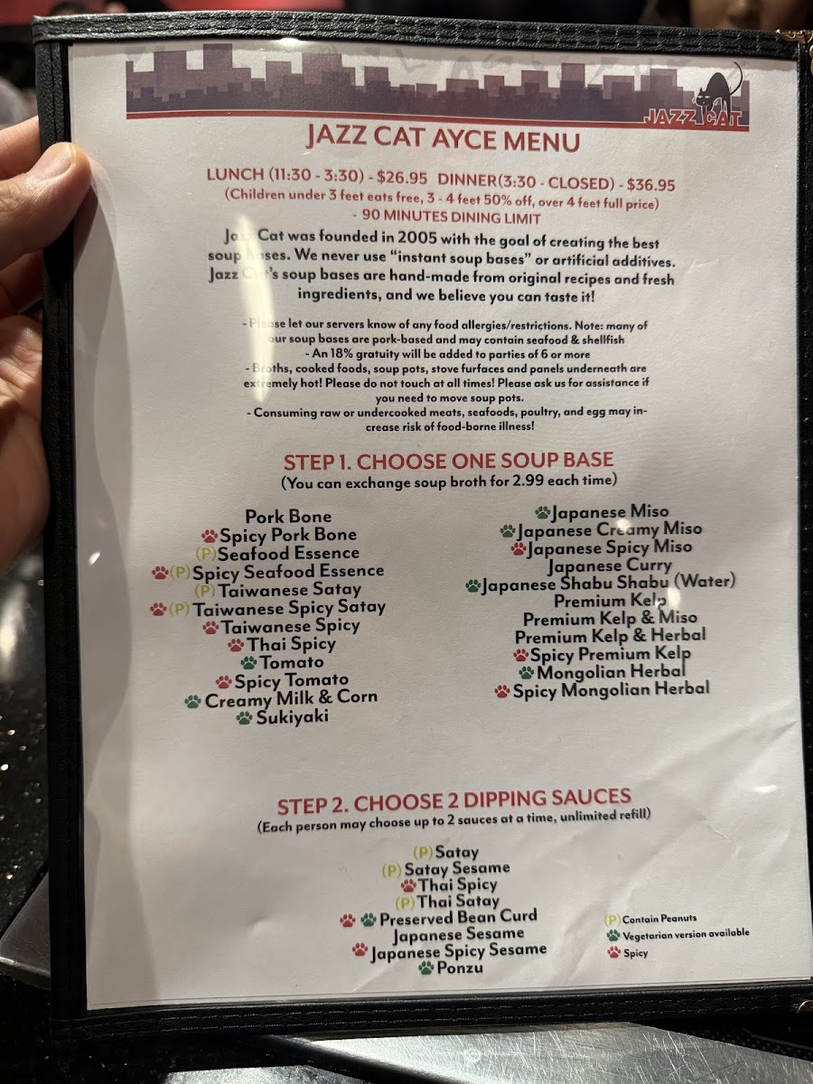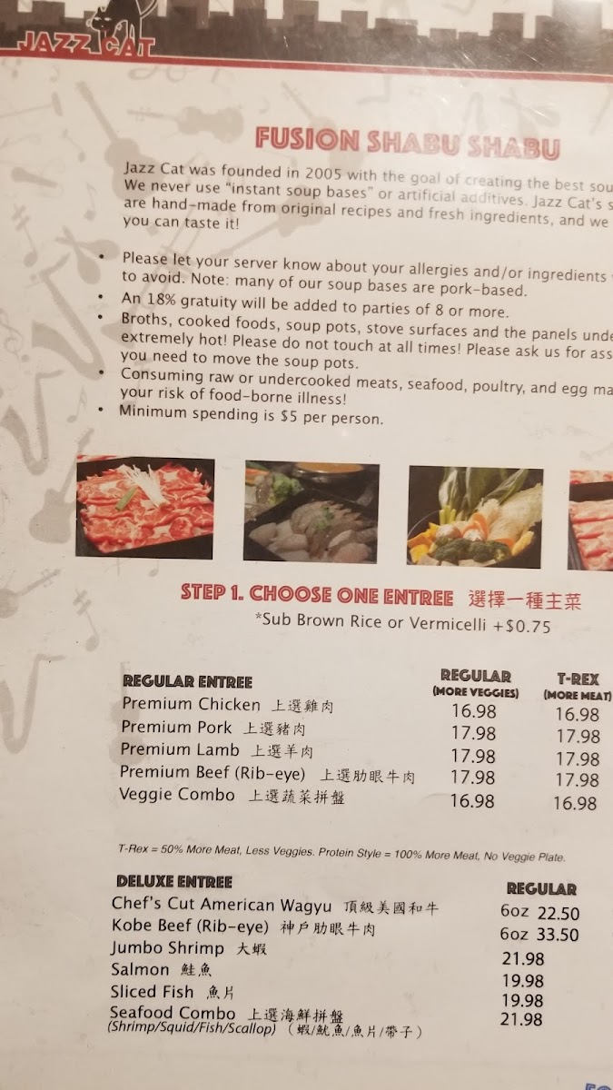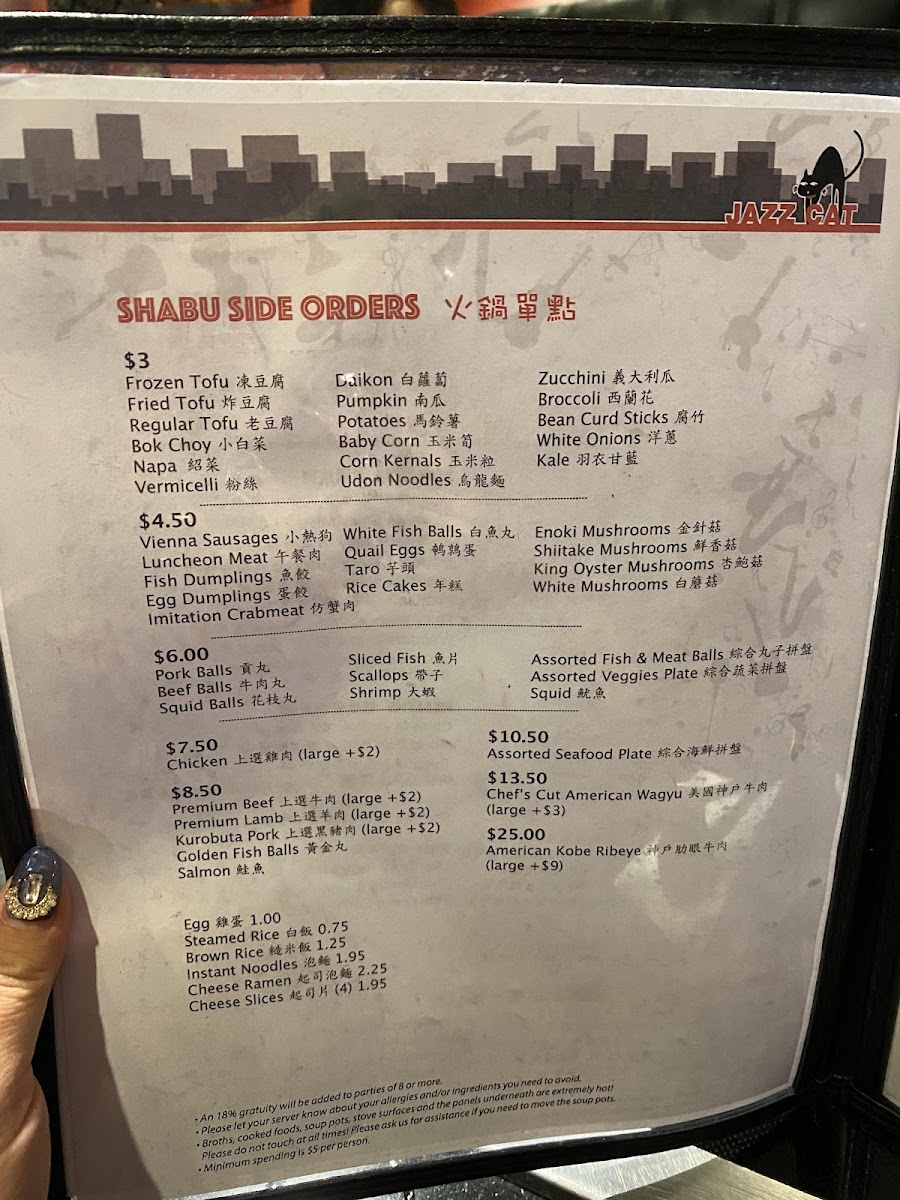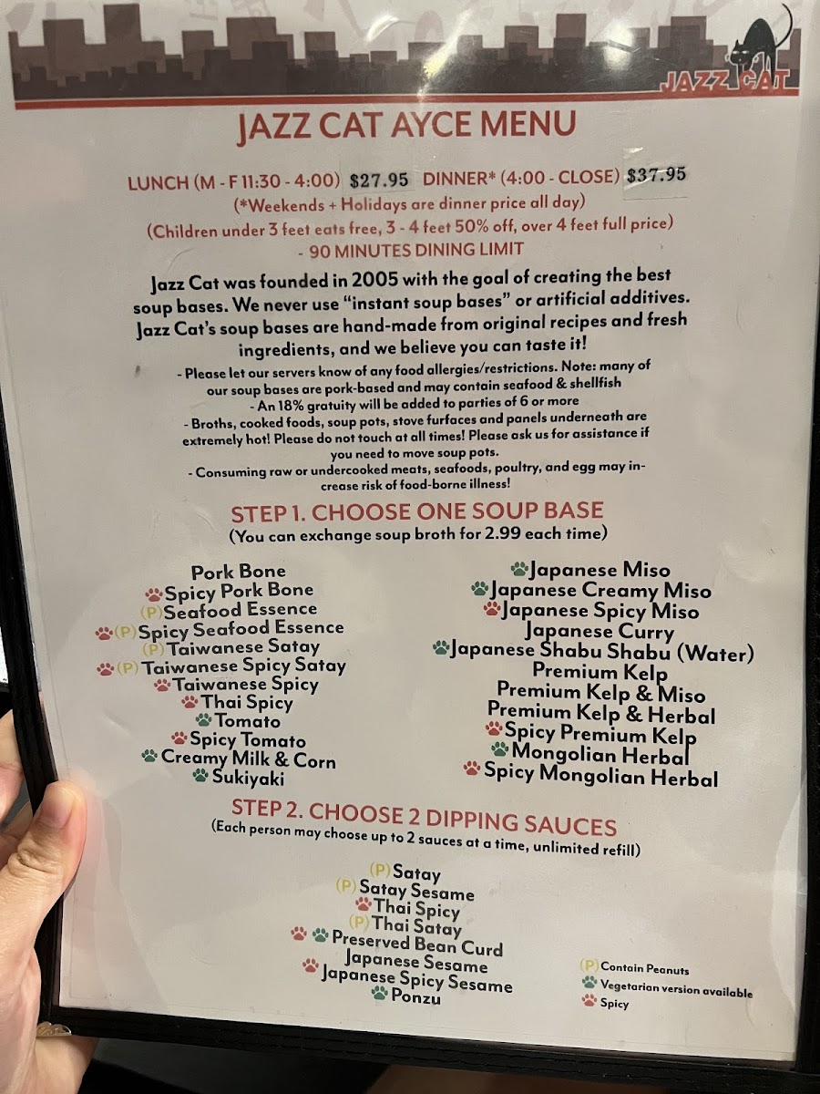 But it's not just the incredible food that has patrons returning time after time. Take it from Peggy Fung, who calls Jazz Cat her "favorite regular goto hot pot place" for its "great taste, great portion, great atmosphere, great service, and reasonably priced" meals. Ryan E. agrees, praising the delicious Angus beef and attentive staff, who ensure every family visit is filled with joy. You'll find that the staff, including attentive team members like Jennifer and Cruz, are ready to assist you with any request, making your dining experience smooth and enjoyable.